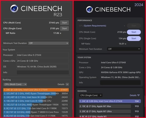 ·酷睿Ultra9275HX性能释放强力