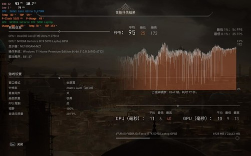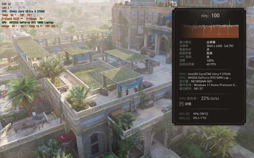 在强劲的功耗释放基础上,雷蛇灵刃182025在应用端完全没有瓶颈,而在游戏端,得益于酷睿Ultra9275HX处理器和RTX5090笔记本电脑GPU,自然也是完全没有瓶颈,接下来我们看看雷蛇灵刃182025在游戏方面的具体表现。