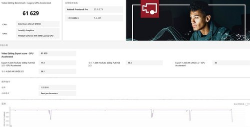 英特尔酷睿处理器和NVIDIA显卡的组合可以承接所有重负载生产力任务,并带来高效体验。在ULProcyon照片编辑和视频编辑测试中,基于二者打造的雷蛇灵刃182025得分达到17594分和61629分,图片处理和视频剪辑效率拉满,是超高效率的生产力平台。