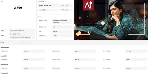 AI性能方面,RTX5090笔记本电脑GPU在Float16算力评分上取得了2899分的成绩,表现卓越。