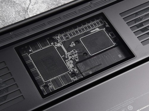 此外有朋友可能会认为在底部做这样的设计还不如增加散热孔来提升散热效率。其实传统笔记本是没问题的,但是雷蛇灵刃182025采用了内吹散热设计,这一区域如果增加散热孔的话,内部风压就无法得到强化,反而会影响内吹散热架构的散热效率。而做成透明开窗设计,自然是增强了整体的设计感。