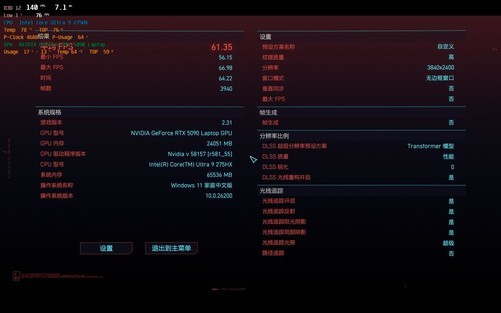 首先是《黑神话:悟空》。测试时依旧是4K分辨率、开启光追和影视级画质,这对于RTX40时代的游戏本来说绝对是噩梦般的设定。