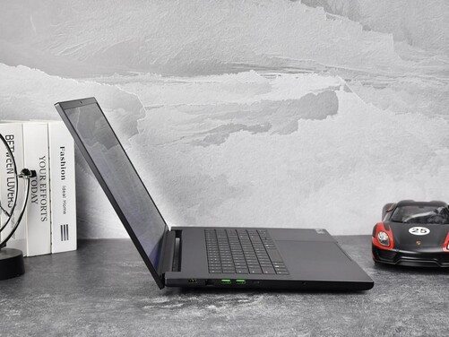 从机身侧面看过去,雷蛇灵刃182025无论是屏幕还是机身,都显得非常纤薄。此外,这款产品采用了通体采用了CNC铝合金一体化机身,纯黑配色加上雷蛇标志性的绿色做点缀,以及A面正中能够发出绿色光芒的雷蛇LOGO,无处不在传承着雷蛇品牌的家族式设计语言。